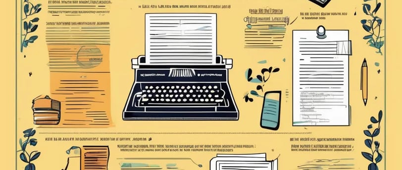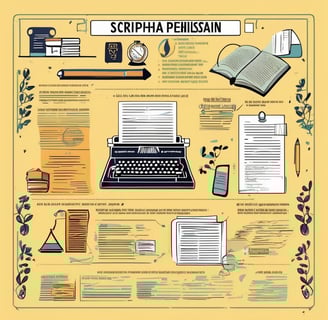Evolusi penulisan skripsi dari gulungan kuno dan pena bulu ke mesin ketik dan laptop modern, menggambarkan perkembangan sejarah penulisan akademis.
